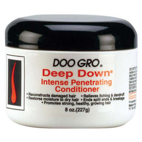 Helps restore moisture to dry, damaged, relaxed, and chemically treated hair. With a unique blend of natural ingredients, DOO GRO® DEEP DOWN® Intense Penetrating Conditioner helps reconstruct damaged hair, mends split ends, detangles, and helps stop hair breakage while leaving hair in the very best condition, even after the very first use. Great for the whole family, young and old, DOO GRO® DEEP DOWN® Intense Penetrating Conditioner relieves itching and flaking and helps promote strong, healthy, growing hair.