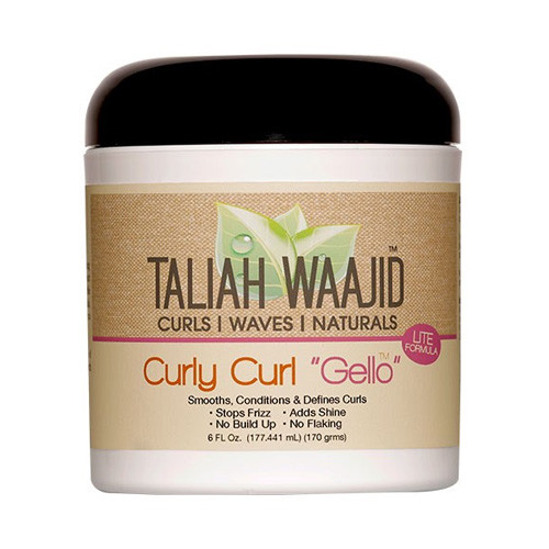 Taliah Waajid’s Curly Curl “Gello” is sure to smooth, condition and define those curls. Curly Curl “Gello” is a light alcohol-free, conditioning hydrating gel. The Curly Curl “Gello” stops frizz, adds moisture, defines, shapes and seals in any size, textures or curls. No more crunchy, Flaky hair! This Gello dries soft and adds shine with no flaking.