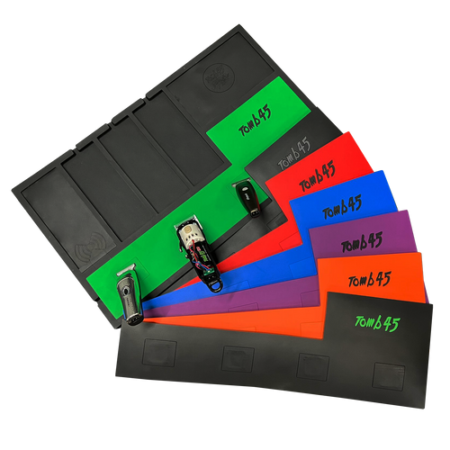 All new Tomb45™️ Magnetic Mat inserts fits perfectly inside your Powered Mat. This upgraded feature allows you to place your Clipper, Trimmer, or any other magnetic tool on the magnet holder while your tools are not wireless charging. The magnetic mat comes with 4 magnetic holding blocks, and also has 3m tape on the bottom to securely stay in your powered mat!